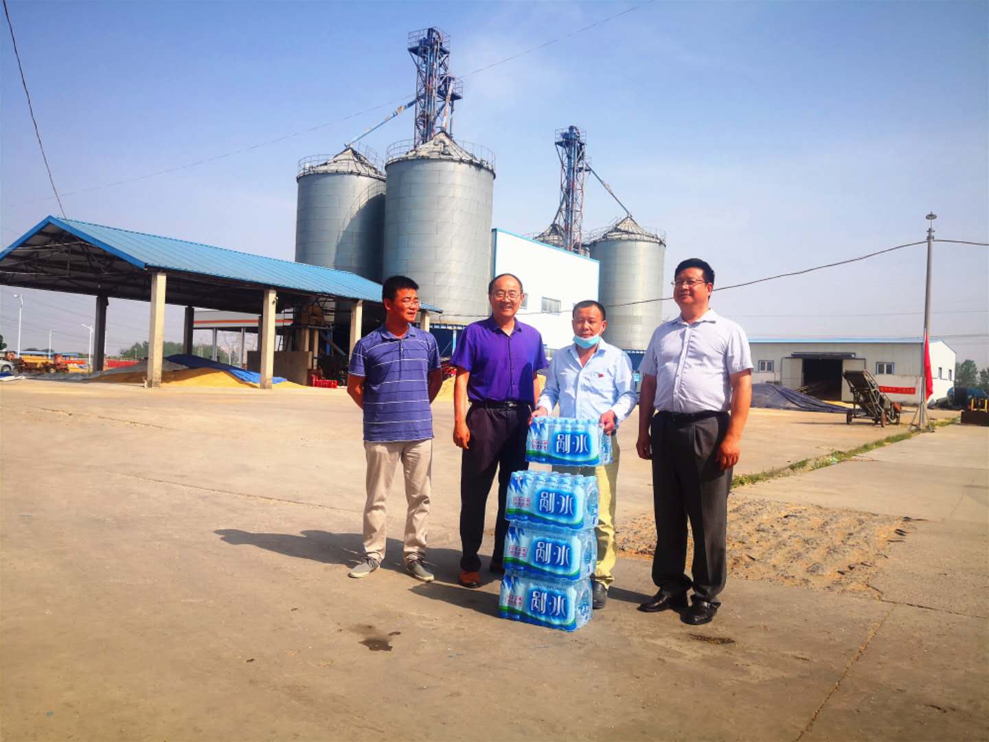 6月4日,淮南農(nóng)場(chǎng)公司黨委副書(shū)記兼工會(huì)主席楊洪善一行到淮南分公司慰問(wèn)冒高溫戰(zhàn)斗在夏糧收購(gòu)一線的員工,轉(zhuǎn)達(dá)農(nóng)場(chǎng)黨委問(wèn)候和關(guān)懷,向他們送去礦泉水、西瓜等防暑降溫用品。楊洪善叮囑大家一定要做好防暑降溫工作,合理調(diào)休,確保收購(gòu)工作平穩(wěn)、有序、高效進(jìn)行。