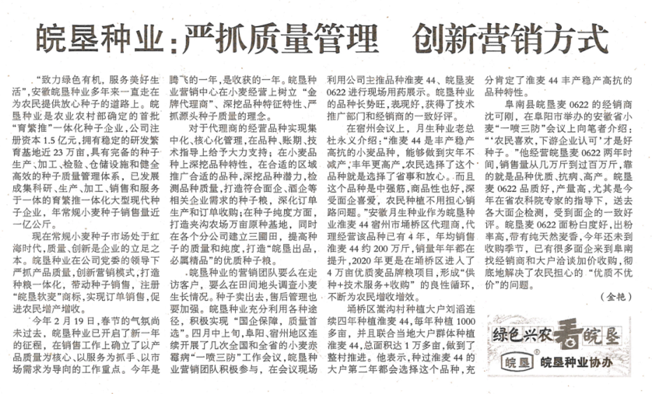 皖墾種業(yè):嚴(yán)抓質(zhì)量管理 創(chuàng)新?tīng)I(yíng)銷方式